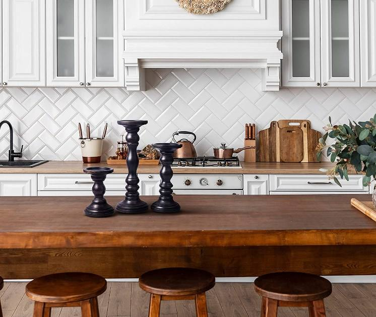 Hand Carved Wood Pillar Candle Holders Vintage Classic Style Eco-Friendly for Wedding and Home Decor by MULTI CRAFT