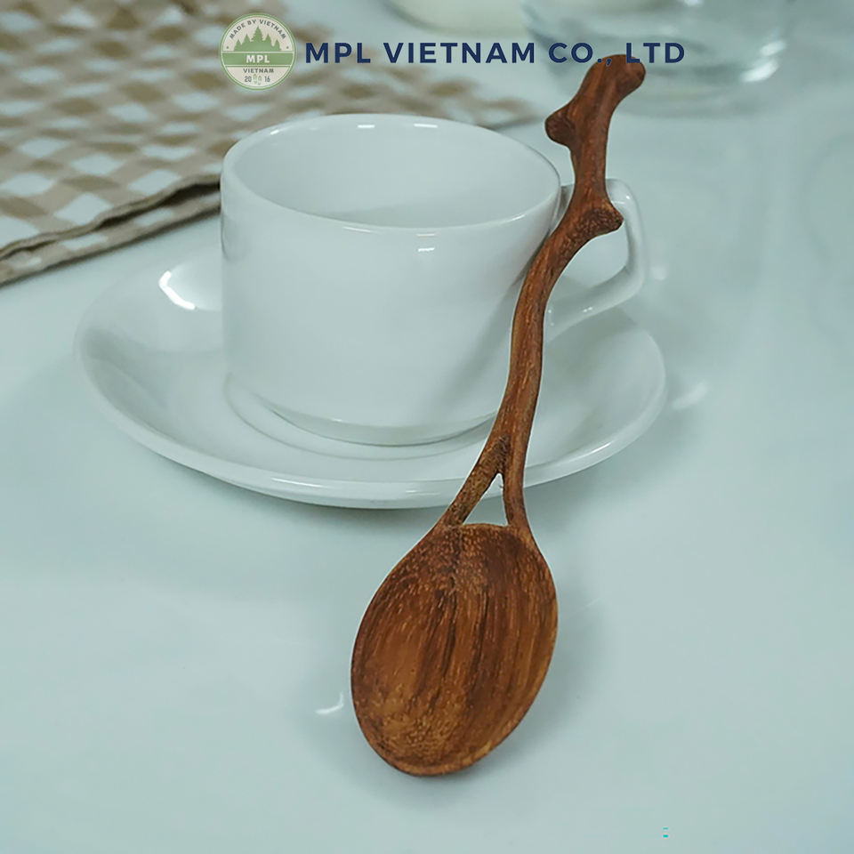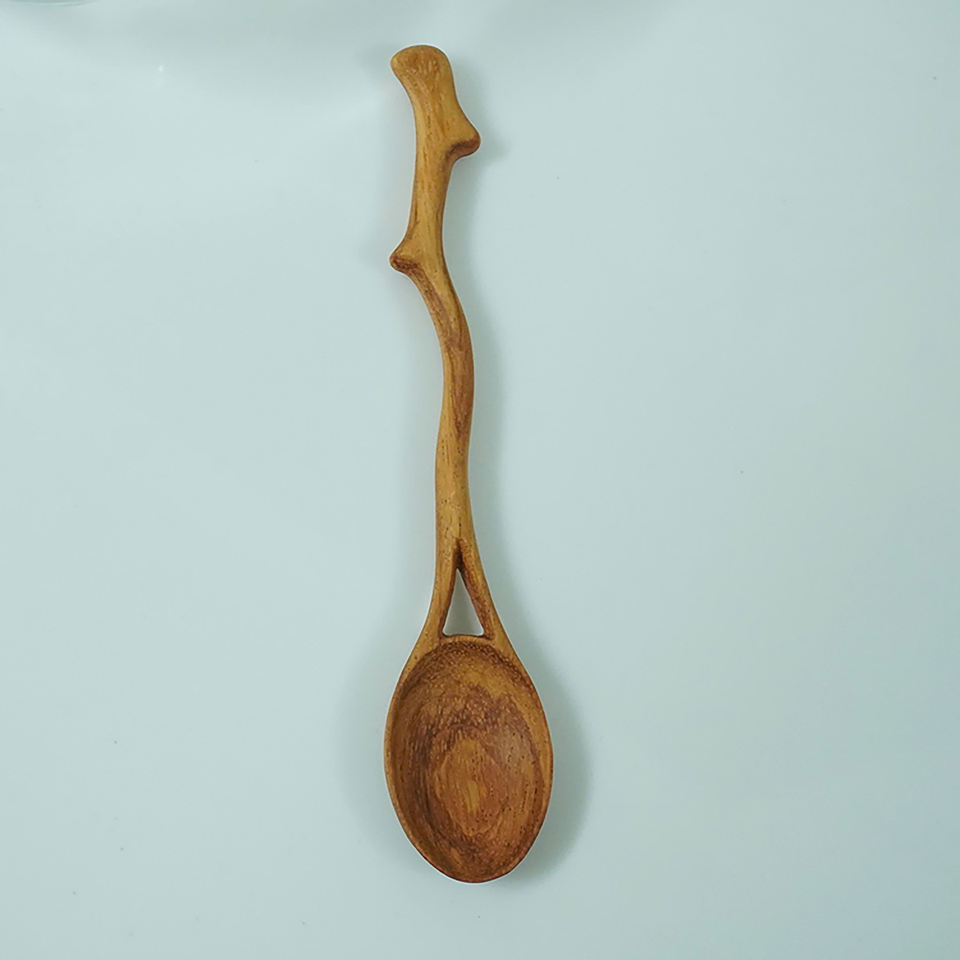 Hand-Carved Wooden Bamboo Shape Handle Spoon Sustainable Heat Resistant Non-Stick Easy Clean Dishwasher Safe Tea Spoon