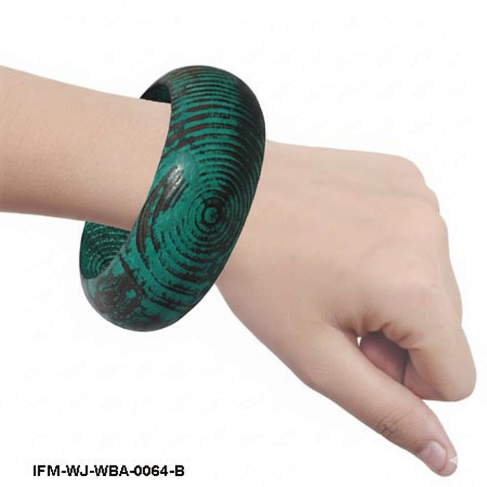 Hand-Carved Wooden Bangle Bracelet Antique Distressed Teal Finish Chunky Wood Cuff Jewelry Vintage Style Tribal Armlet for Women