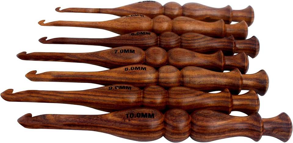 Hand-Carved Wooden Crochet Hooks - Rosewood Handle Crochet Hooks Knitting Needle Weave Yarn Best Gift Handle Hooks Set of 7 Pcs