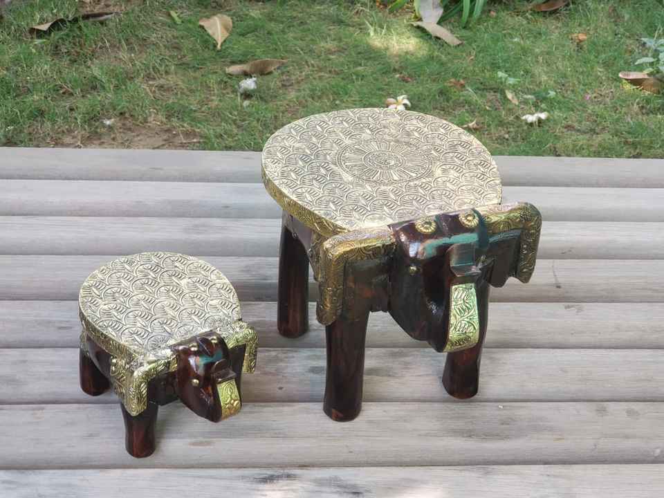 Design:Elephant Shaped Stool with Traditional Handmade Brass Work