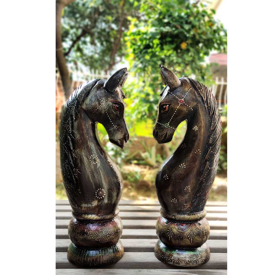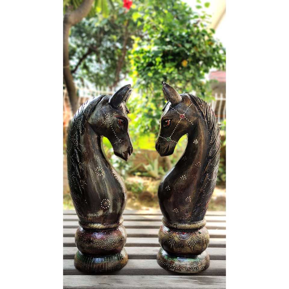 Hand Carved Wooden Horse Bookends Model 1 Sculpture