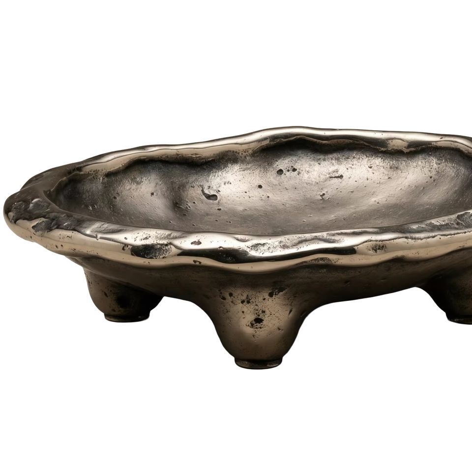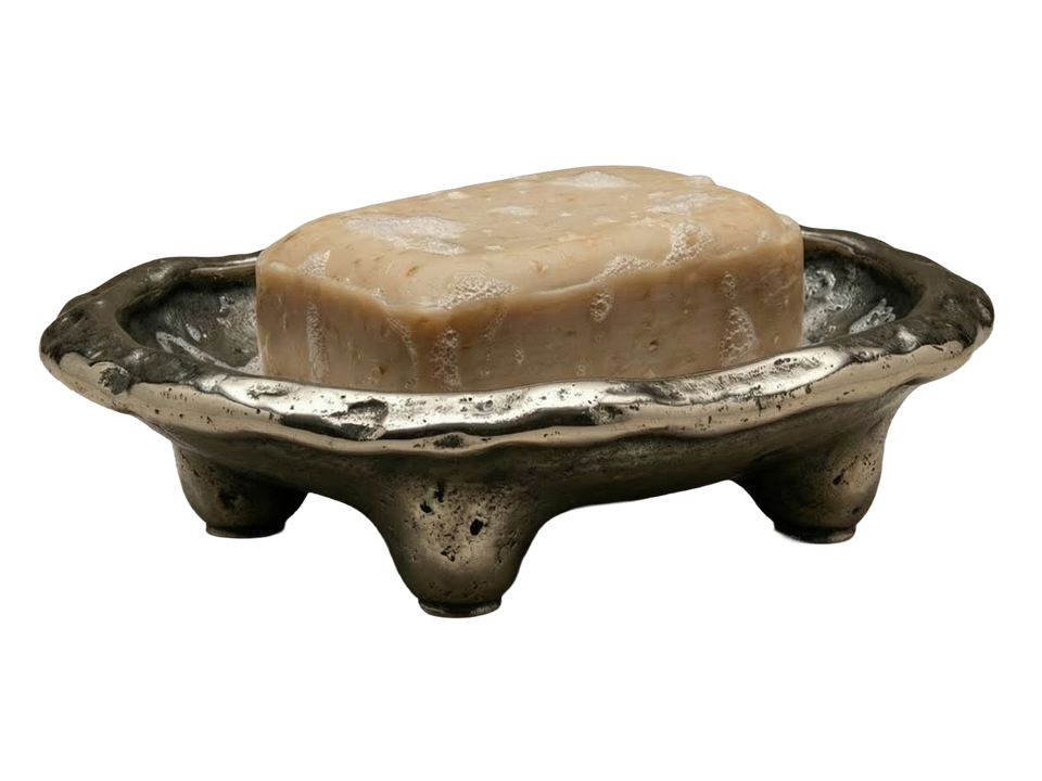 Hand Cast Brass Pebble Footed Soap Dish Trinket Dish One-Piece Casting Aged Nickel Smoked Silver Finish Organic Ramadan Wedding