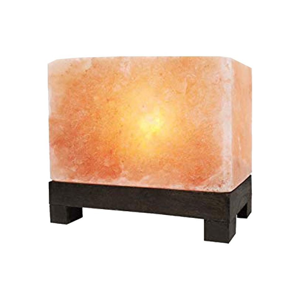 Hand Crafted Block Shape Salt Lamp With Wooden Base Pink Salt Lamp Square Salt Lamp-Sian Enterprises