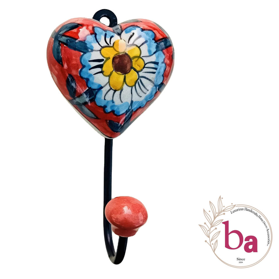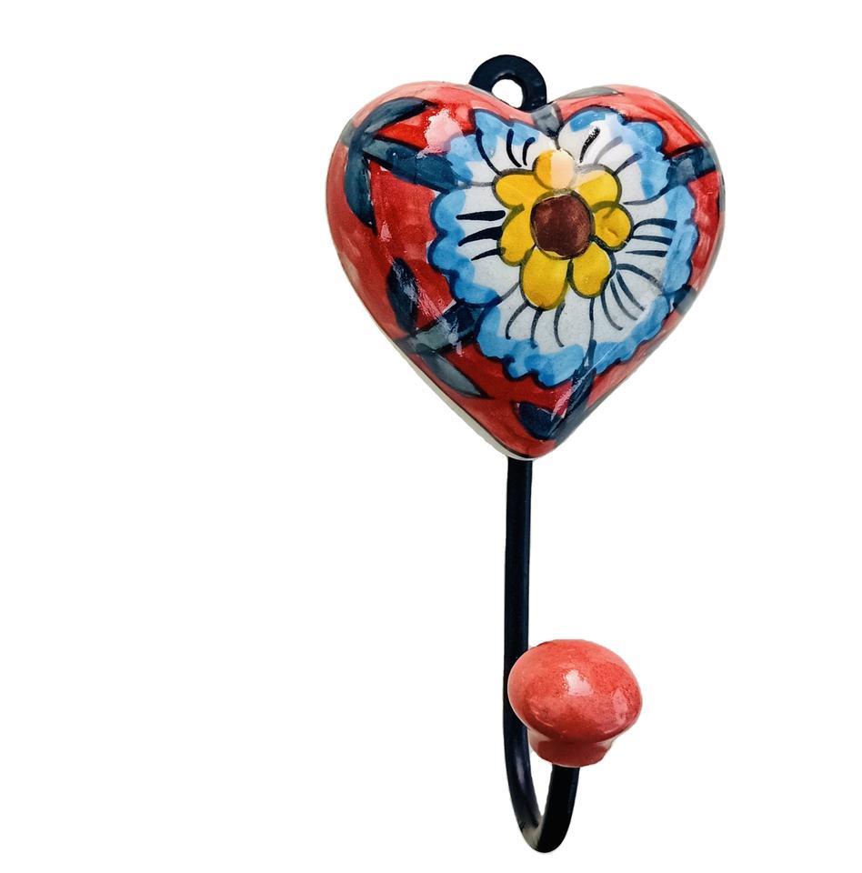 Hand-Crafted Ceramic Heart Tile Wall Coat Hook Keychain Hanger