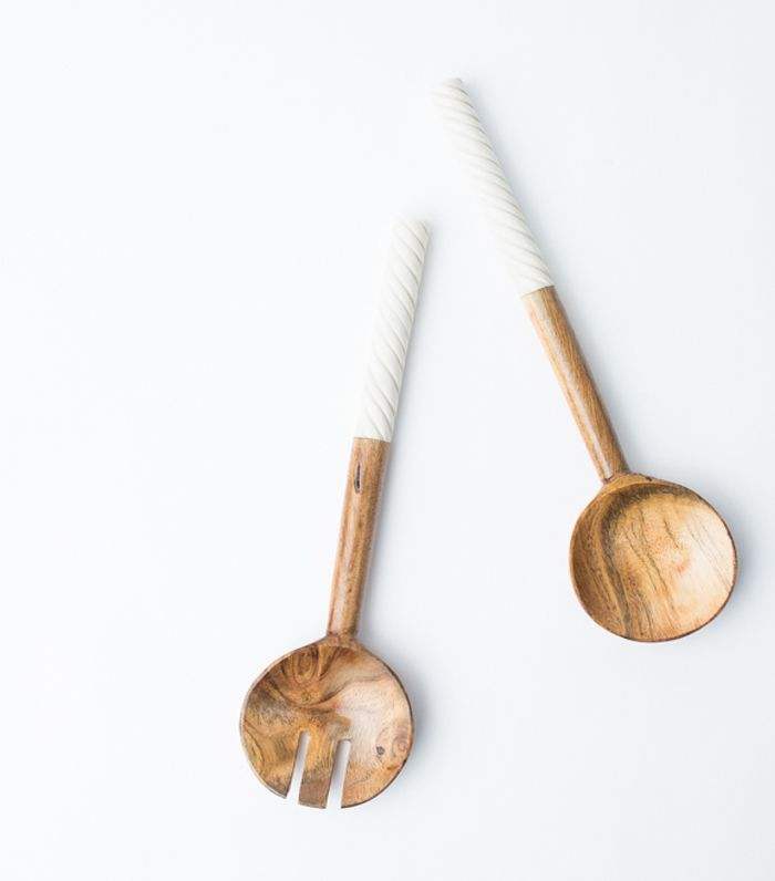 Wood Bone Salad Server Set