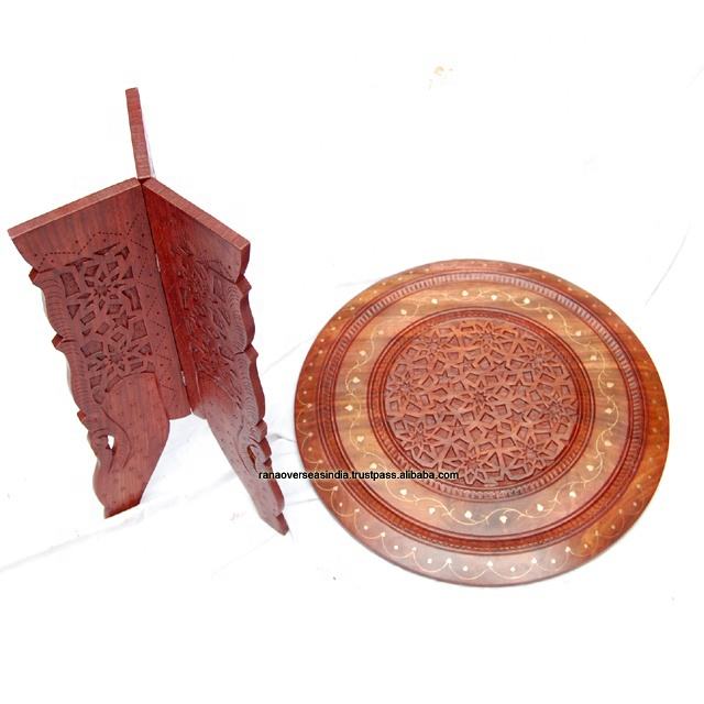 Hand Crafted Folding Side Table High Quality Coffee Table With Brass Inlay Design in Brown Color for Bed Room Decoration