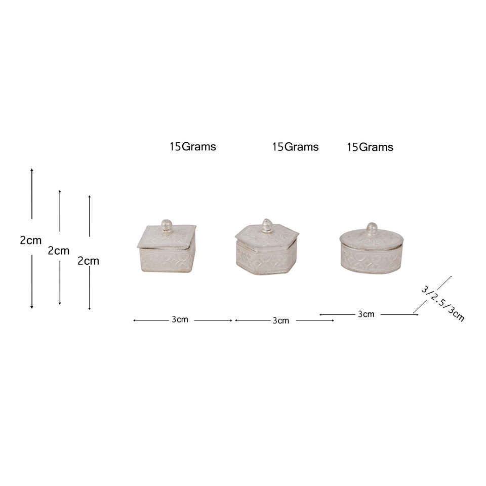SIZE OF ROUND & SQUARE DIBBI:3 X 2.5 X 3 CMS