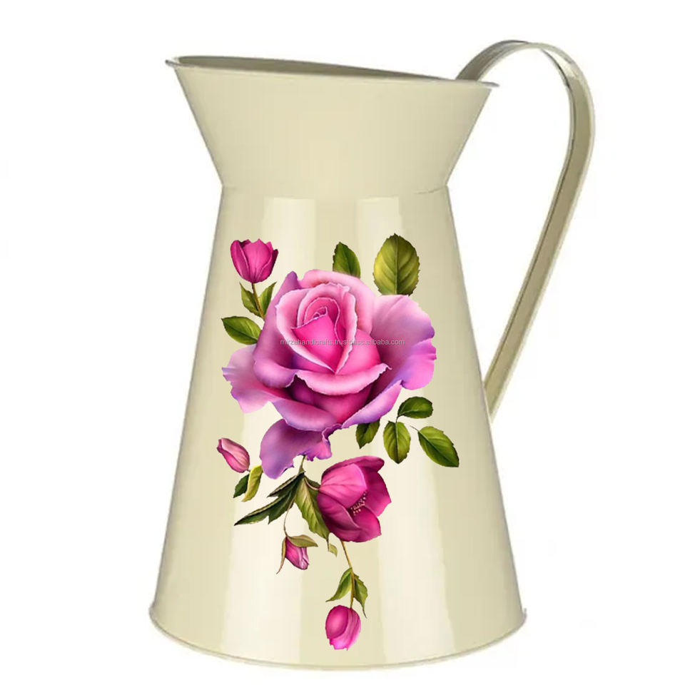 Hand Crafted Jug High Quality Enamel Metal Floral Pitcher Jug Garden Vase with Handle Decorative Pitcher Custom Price