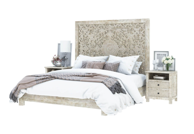Hand Crafted Traditional Solid Wood Premium Bedroom Sets Rustic Modern Style Attractive Storage Platform Bed
