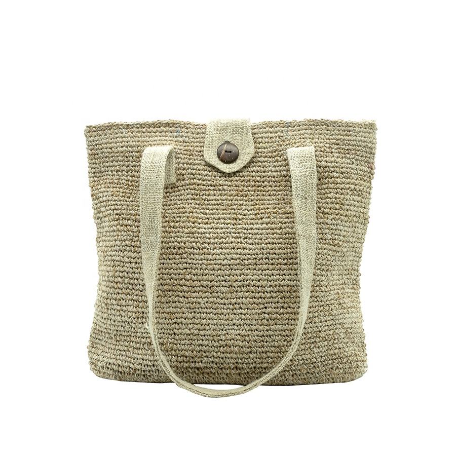 Hand Crochet Women's Tote Bag Yarn Eco Hemp 100% Natural Lining Button Closure Handmade in Nepal Circular Base Cotton 35/37 Cm