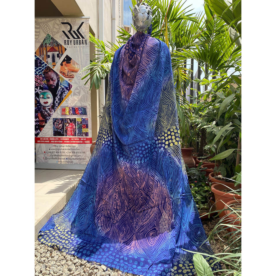 Hand-Drawn Adire Alabela Batik on Chiffon Fabric Ethnic Scarves and Shawls