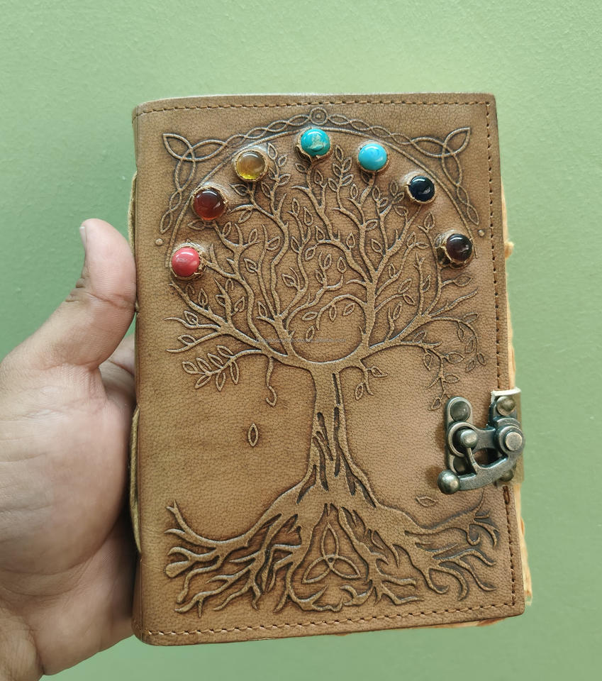 Hand Embossed Seven Stone Studded Crystal Spiral Bound Handmade Fashion Trend Journal Notebook Diary Gift Customized Size