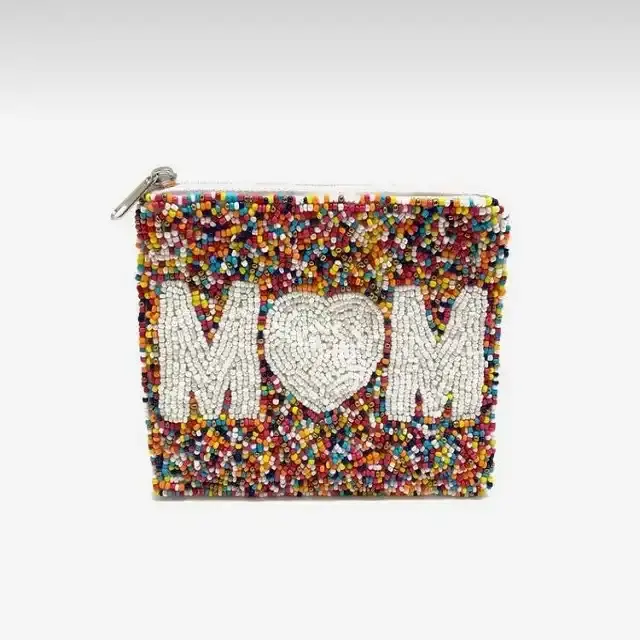 Hand Embroidered Beaded Coin Purse Mardi Gras Small Pouch Evening Bags Colorful With Key Chain Coin Purses No reviews yet