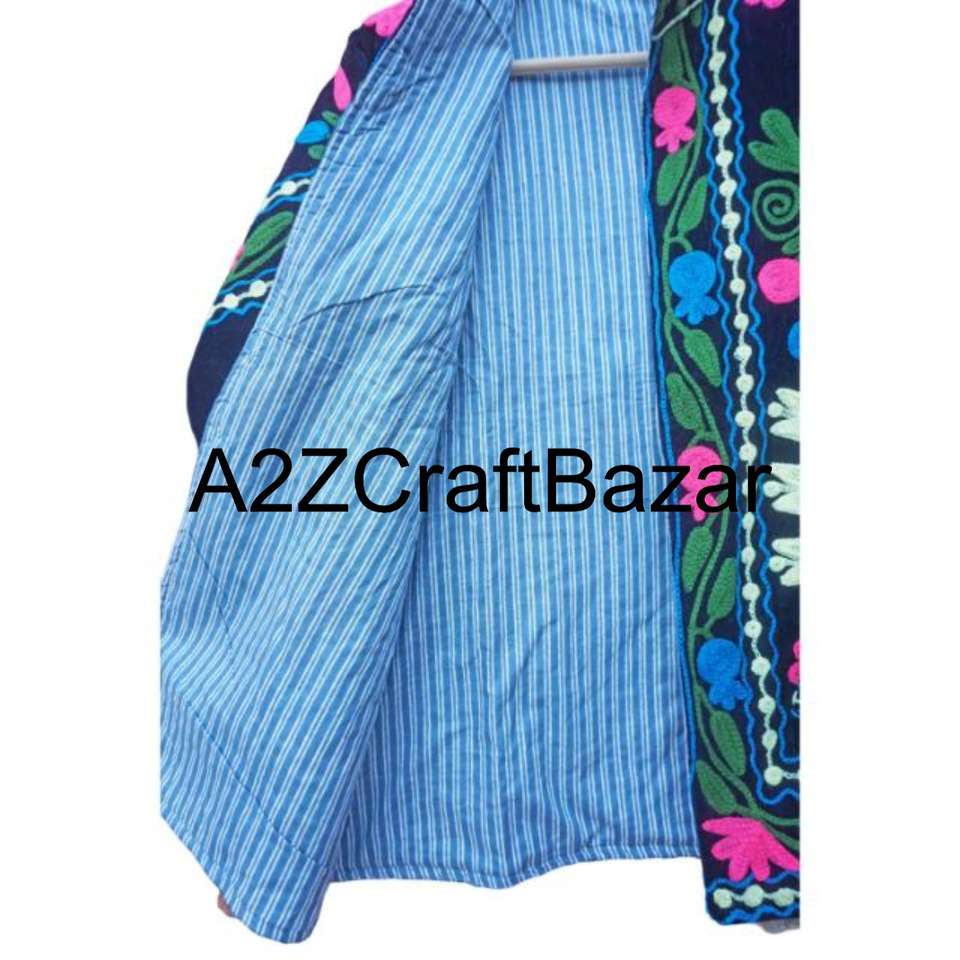 Hand Embroidered Bohemian Floral Knitted Bomber Velvet Jacket Printed Women's Coat Cotton Lining Handmade Eco-Friendly Summer