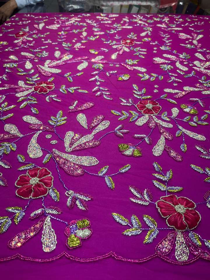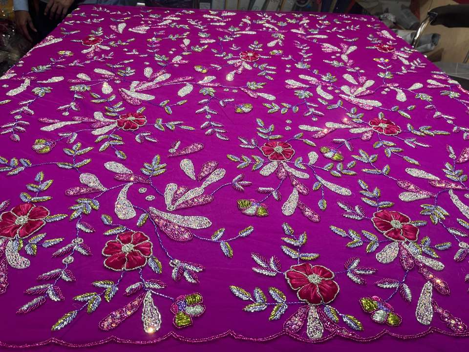 Hand-Embroidered Fabric with Bead and Sequin Work Knitted Net Type Featuring Elegant Embroidered Pattern