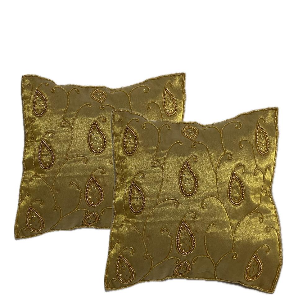 Hand Embroidered Golden Velvet Beaded Silk Pillow Case Floral Cushion Cover for Home for Hotel Banquet Decoration Factory Rate