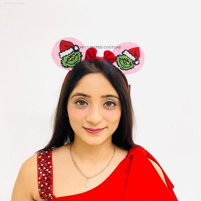 Hand Embroidered Mickey Ears Beaded Headband Unique Christmas Themed Custom Hair Accessories From India