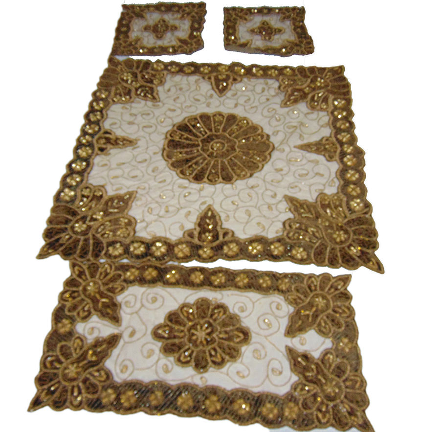 Woven Net Velvet Table Cover with Intricate Embroidery & Soft Velvet Border Luxury Designer Eco-Friendly Customizable Tablecloth