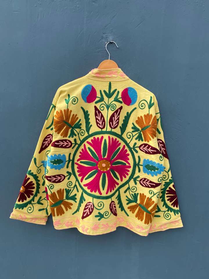 Hand Embroidered Suzani Indian Cotton Short Jacket Vintage Style Jacket for Women Authentic Suzani Hand Embroidered Boho Jacket
