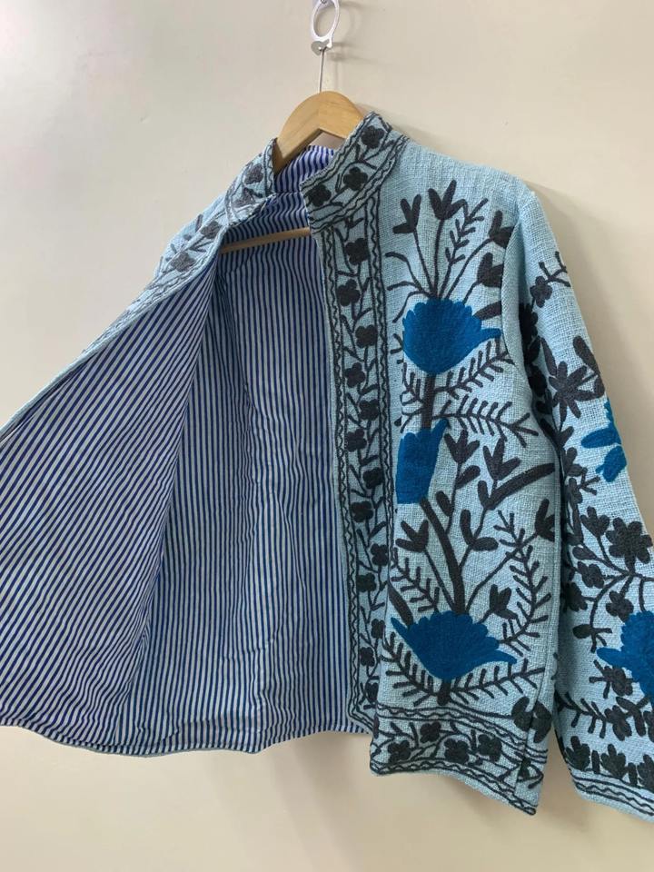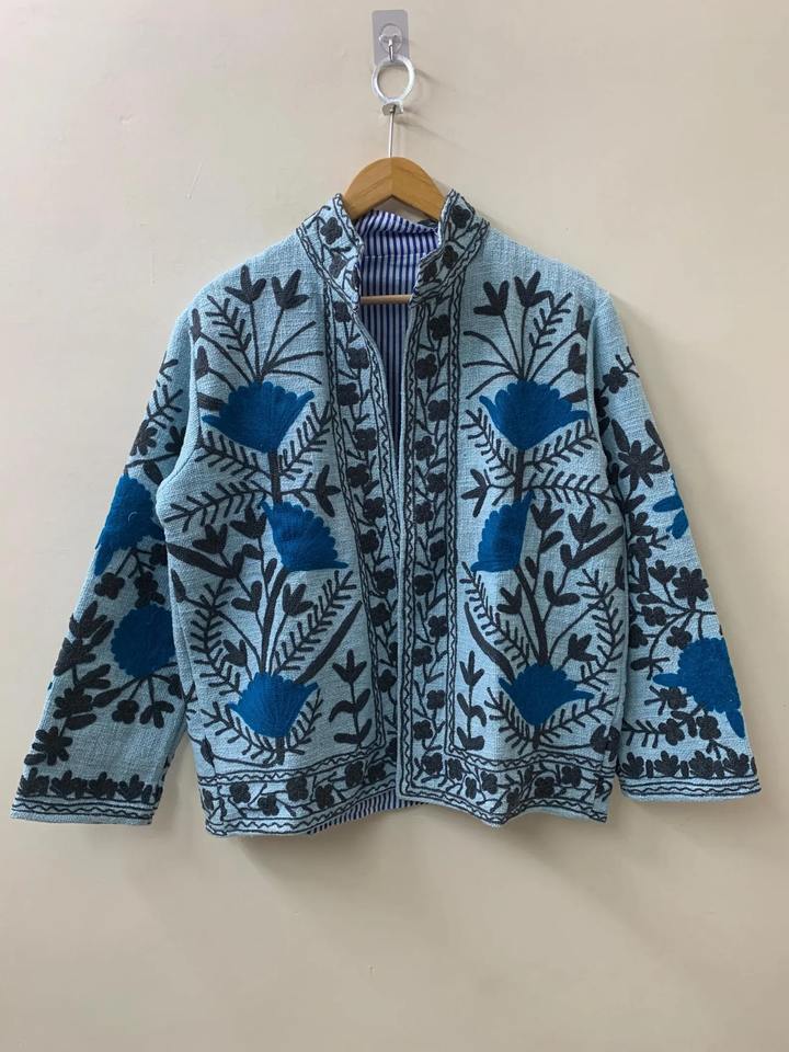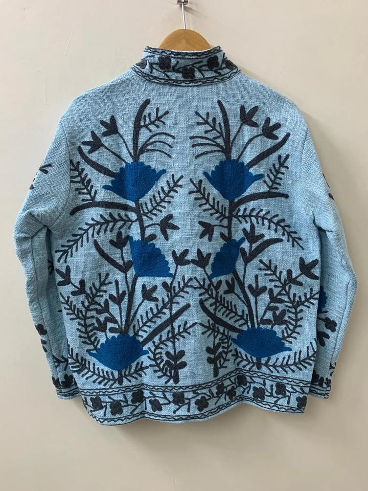 Hand Embroidered Suzani TNT Jacket Winter Wear Jacket Embroidery Kashmiri Short Mandarin Collar Jacket Bohemian Style Coat