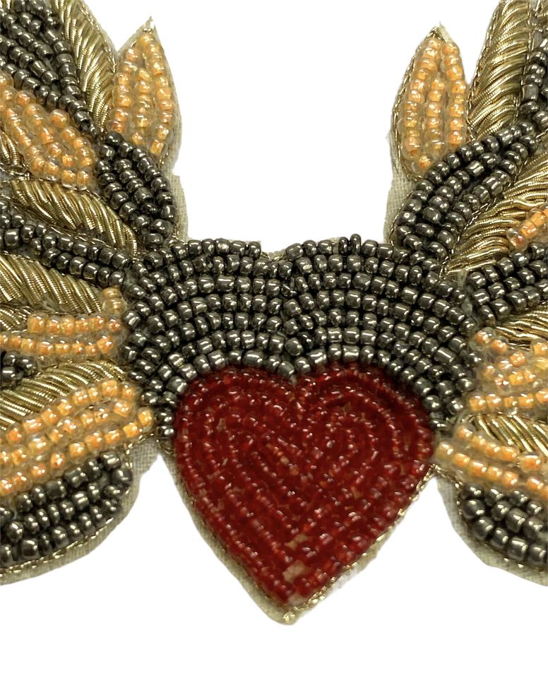 Custom Fashion Heart Embroidery Handmade Sequin Beaded Eyes Badge Sew on Canvas Pearl Patch for Hat & Garment