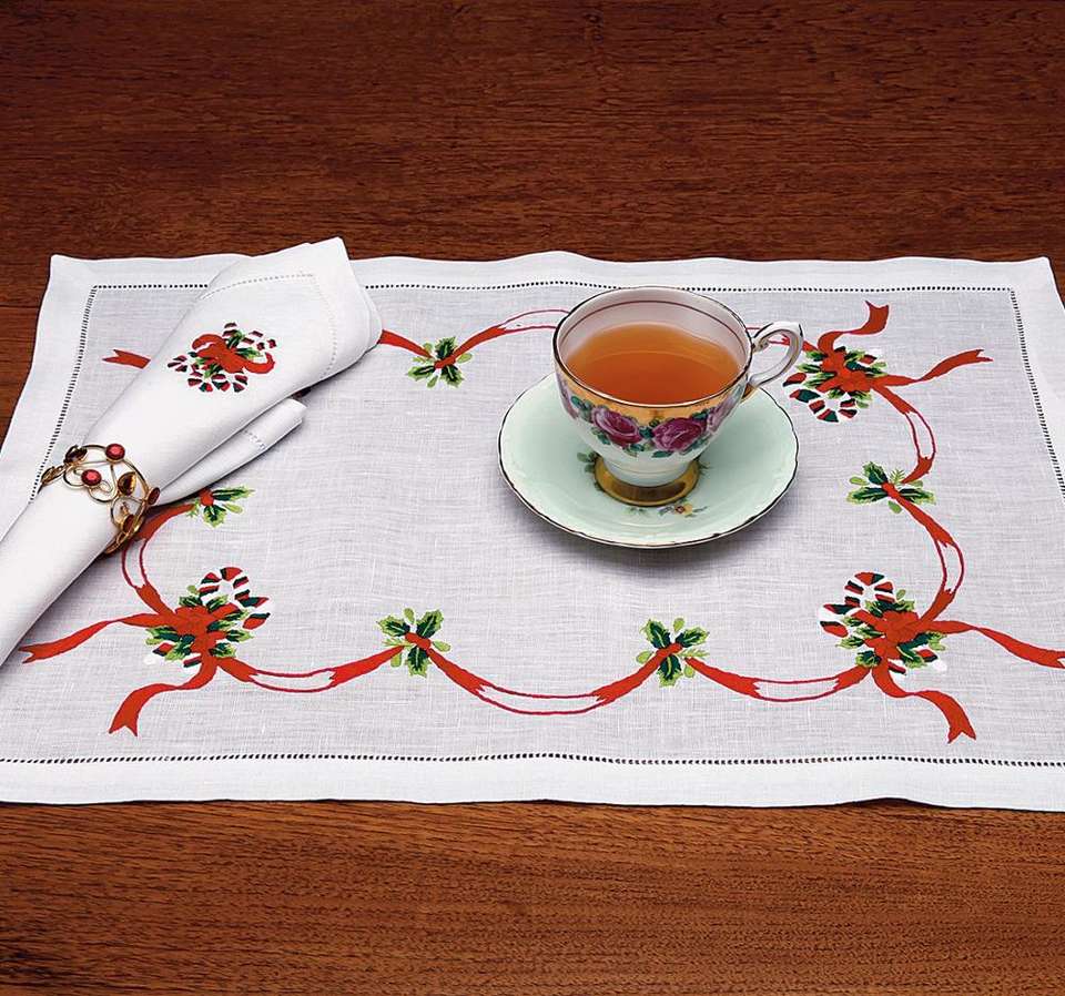 Hand Embroidery & Hemstitch Placemat for Christmas