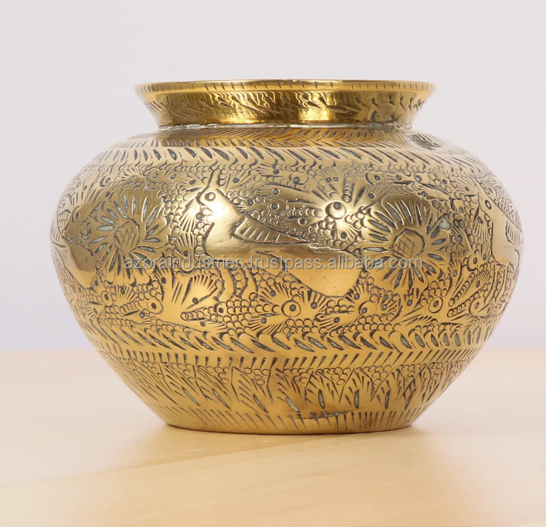 Hand Engraving Detailed Solid Brass Flower Vase Wholesale brass Flower Vase Wedding Decoration Luxury by Azora Industries