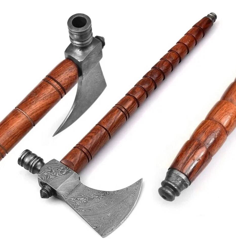 Hand Forged Carbon Steel Tomahawk Axe Viking Style Bearded Axe with Leather Sheath Custom OEM Wood Handle Hatchet