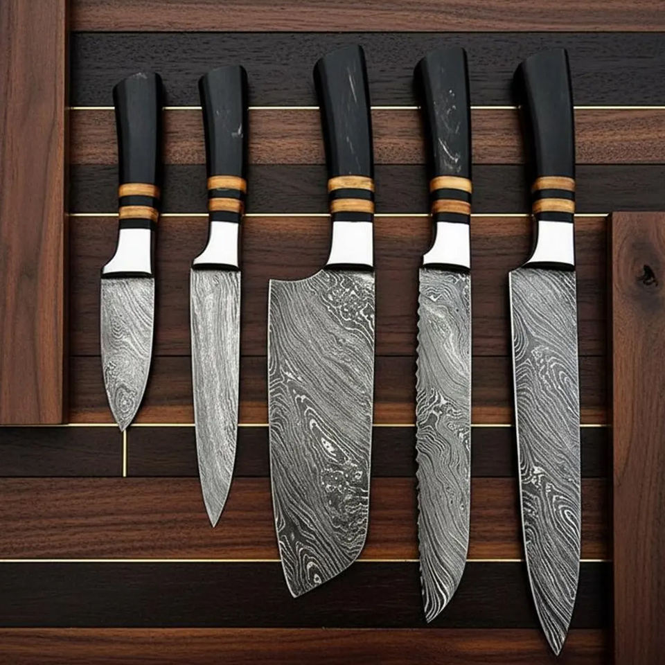 Hand Forged Damascus Chef Set, Damascus Knife Set,Kitchen Knives-5Pcs, Chef Knife