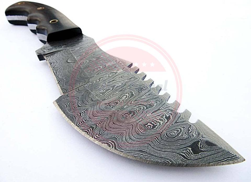 Hand Forged Damascus Steel Hunting Tracker Knife with Wooden Handle, Full Tang Damascus Tracker Knife