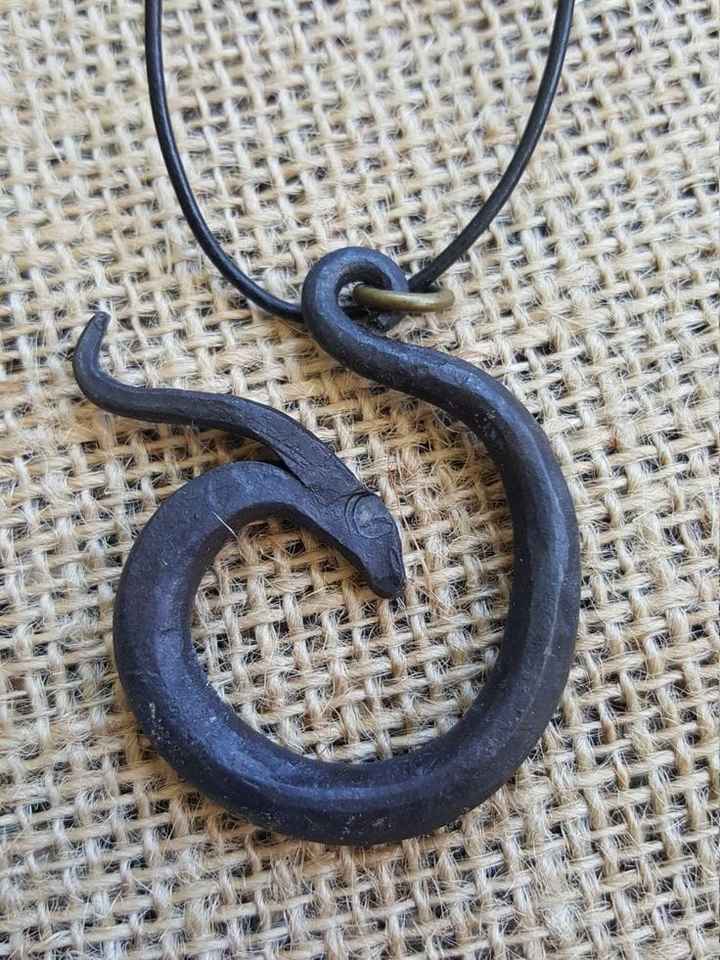 Hand Forged Iron Jewelry Spiral, Heart, Treble Clef, Troll Cross, or Snake Pendent Blacksmith Jewelry - Forged Steel Necklaces