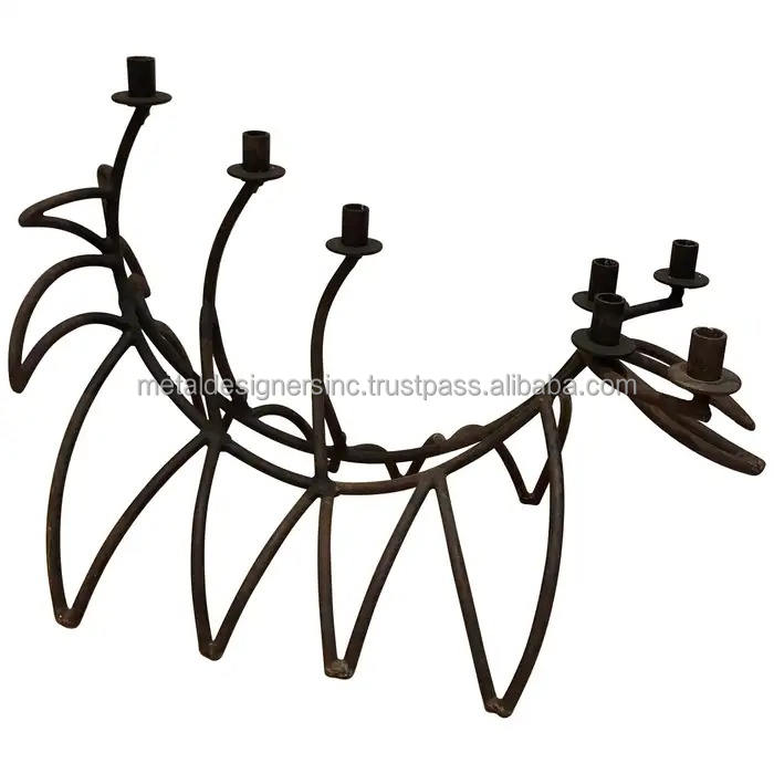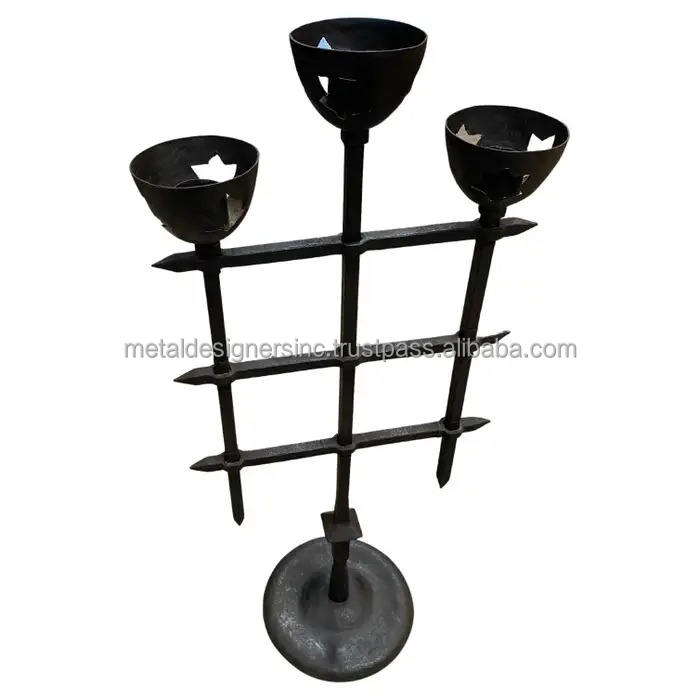 Hand Forged Wrought Iron 3-Arm Candlestick Black Metal Decorative Holder for Home Christmas Other Candle Holders Lanterns Candle