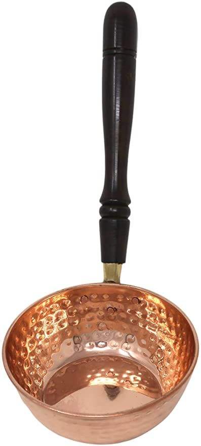 Hand Hammered Cast Iron Frying Pan with Enamel Interior and Brass Handle American Style Eco-Friendly & Durable
