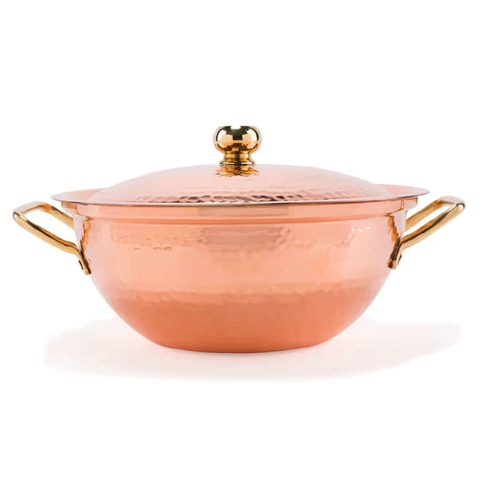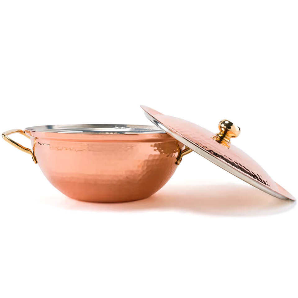 Hand Hammered Copper Soup Tureen Tin Coating Brass Handles 2L-3L Capacity Eco-Friendly American Style Metal Plant Pattern Bowl