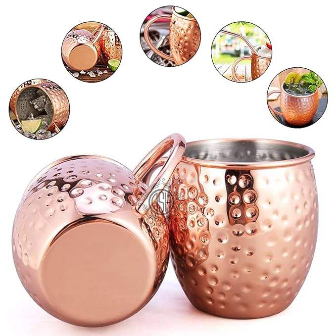 Hand Hammered Eco-Friendly Large Capacity Glossy Polish Copper Mug with Authentic Texture From M/S SHAAD HANDICRAFTS