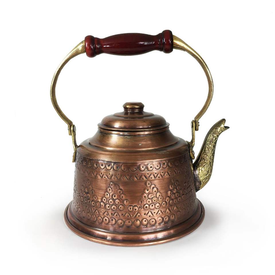 Hand Hammered Engraved Maras Turkey Copper Teapot Eco-Friendly Coffee Tableware Antique Look OXIDE Color
