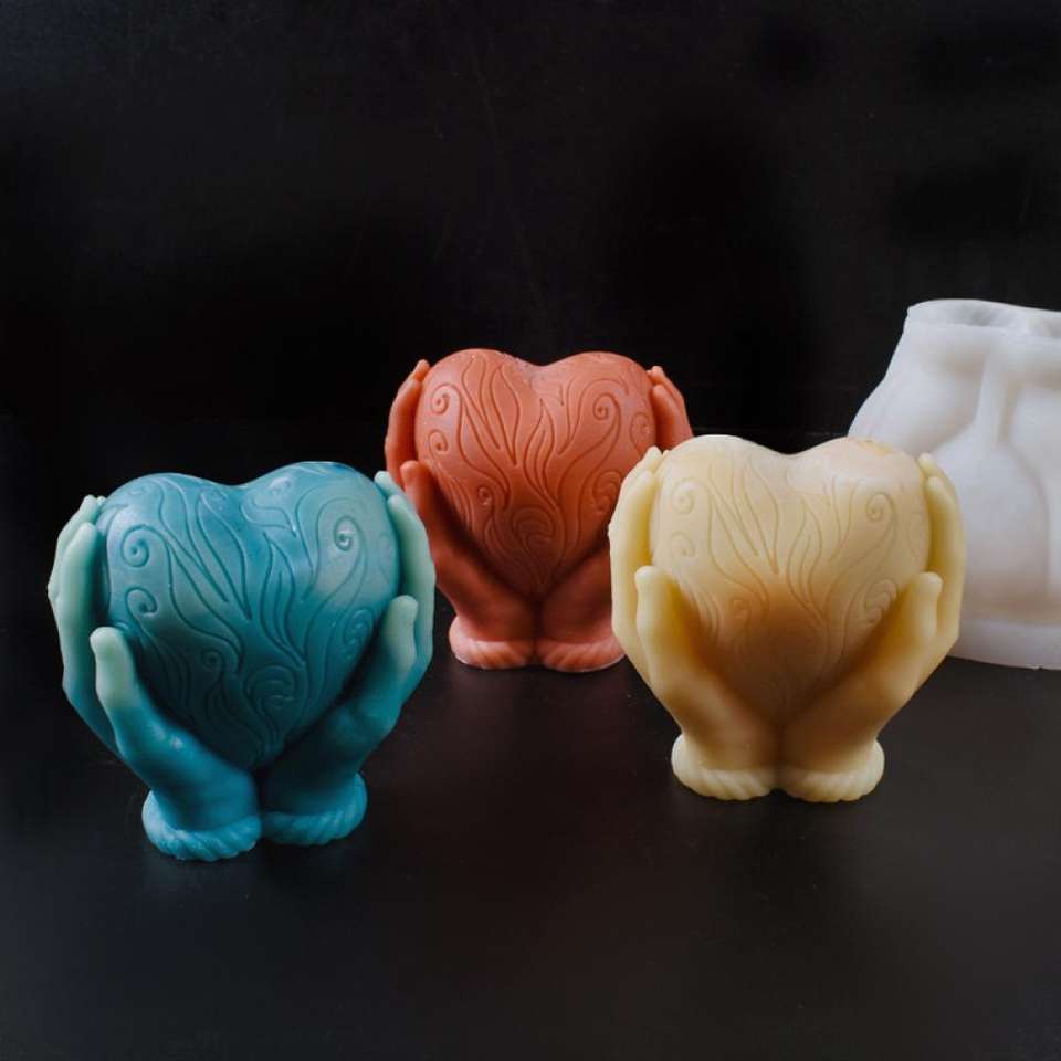Hand Holding Love Candle Valentine Day Totem Pattern Hand Holding Heart Candle Gypsum Resin Candle Silicone Mold