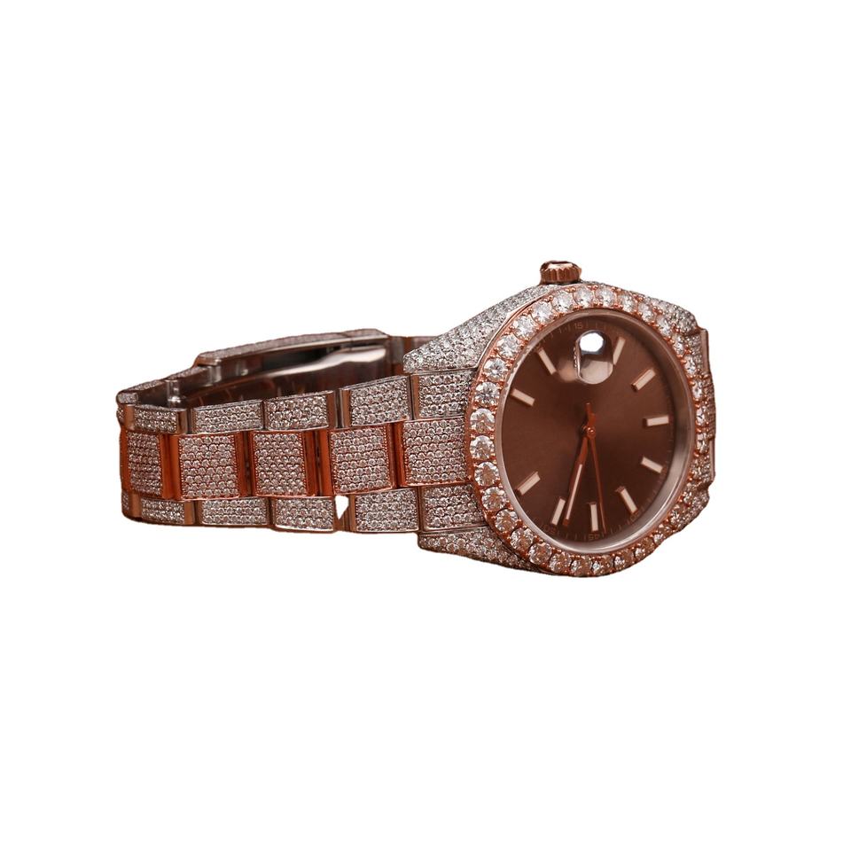 Hand-Inlaid Lab Diamond Quartz Business Steel Iced Out Moissanite Watch Men's Luxury ETA Movement Glass Dial Bulk Export