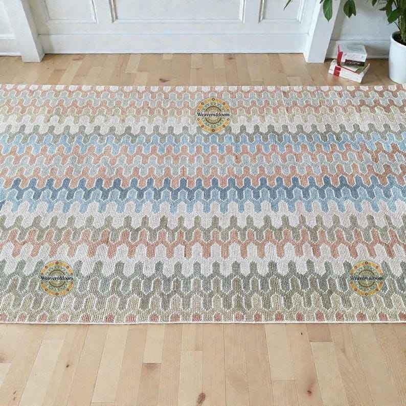Hand Knotted Oushak Rug Pastel Turkish Oushak Area Rug Vintage Look Wool Rug Neutral Boho Tribal Carpet
