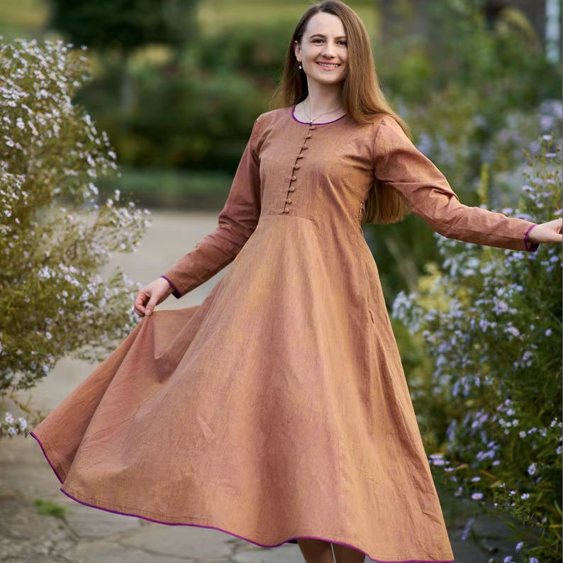 Hand Loom Amber Dress Bohemian Style Calf Length Cotton Dress Casual Occasional Summer Dress Women