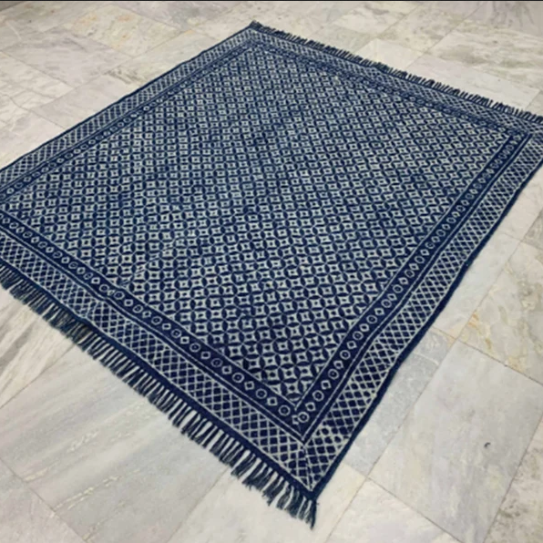 Hand Loomed Indigo Dyed 100% Cotton Yoga Mat Hand Block Print Indian Design Washable Non-Slip 1 Piece