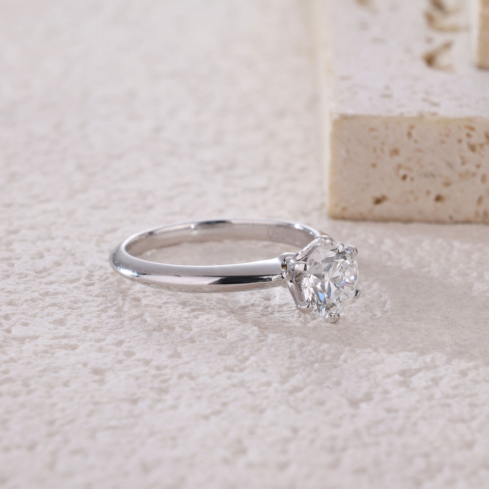 Hand Made 18K Solid Gold for Certified 1 Carat Natural Diamond Classic Simple Design Engagement Wedding Ring Gift for Girlfriend