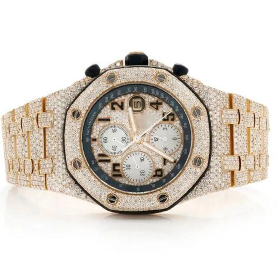 Hand Made Brilliant HipHop Fully Iced Out Round Dial Wrist Watch New Customized Design VVS Clarity Moissanite Diamond Mens Watch
