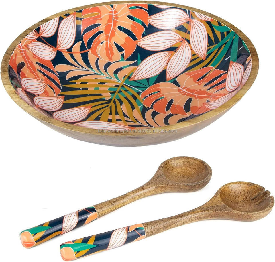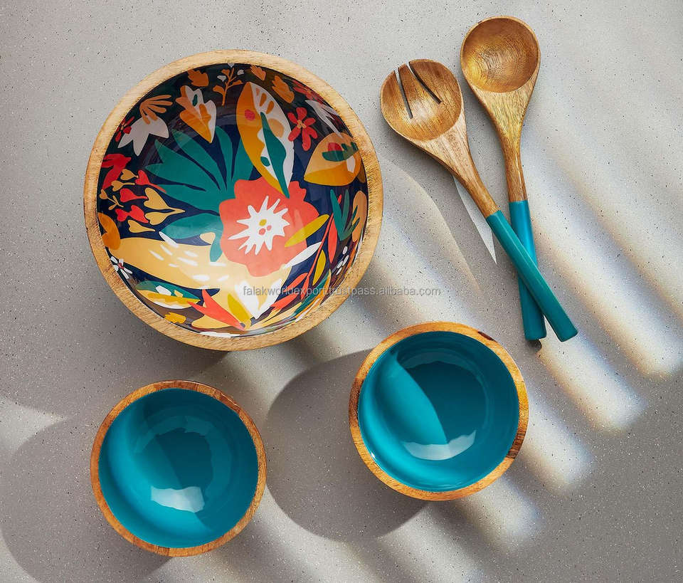 Hand Made Enamel Floral Printed Wooden Bowl Crafted Handmade Soup Serving Bowl for Restaurant & Hotels Table Decoration By FWE
