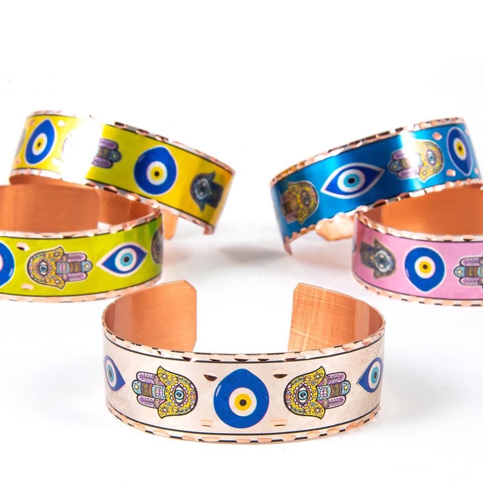Hand Made Evil Eye And Hamsa Designed Copper Bracelet For Souvenir from Turkey