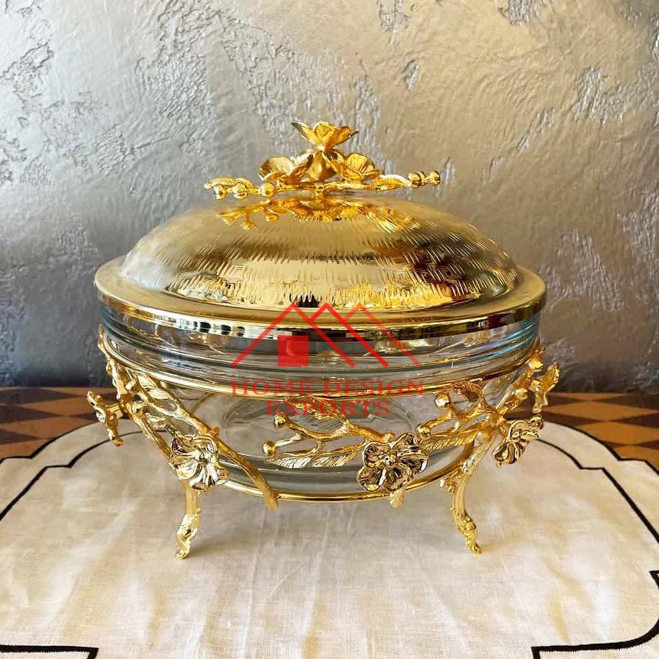 Hand Made Gold Finished Food Serving serving dish Home Hotel Wedding Party Decorative Metal Food Serving Dish