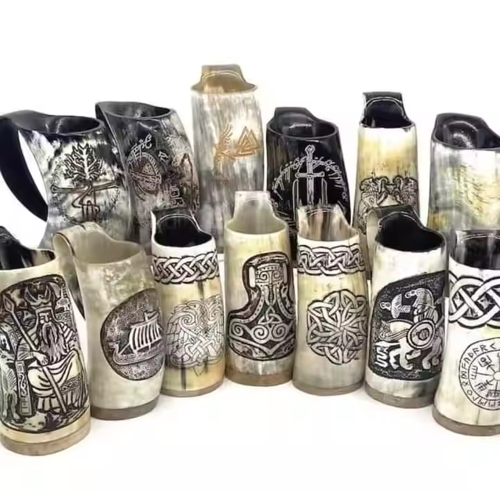 Hand Made Real Viking Drinking Horn Mug With Handle for Beer Coffee leak proof lid,vacuum insulation,coffee by crescent crafts