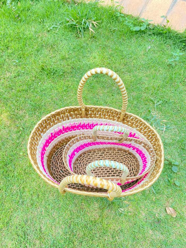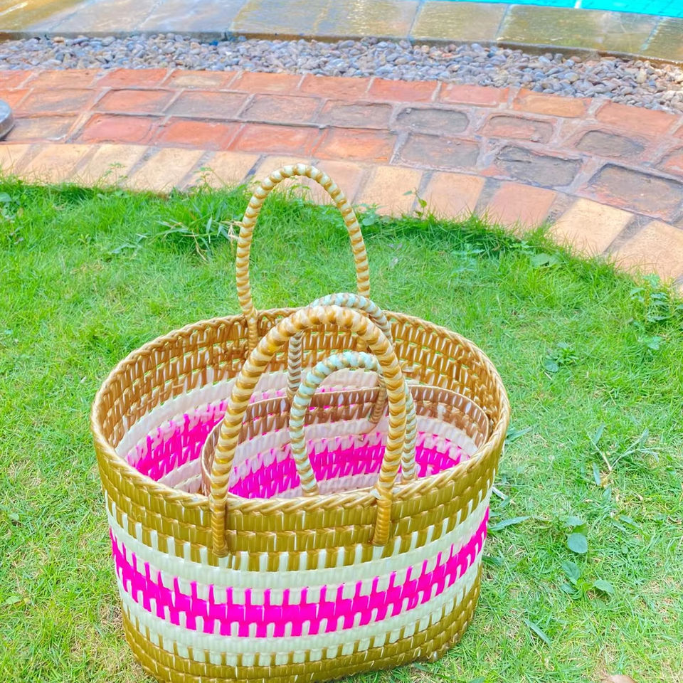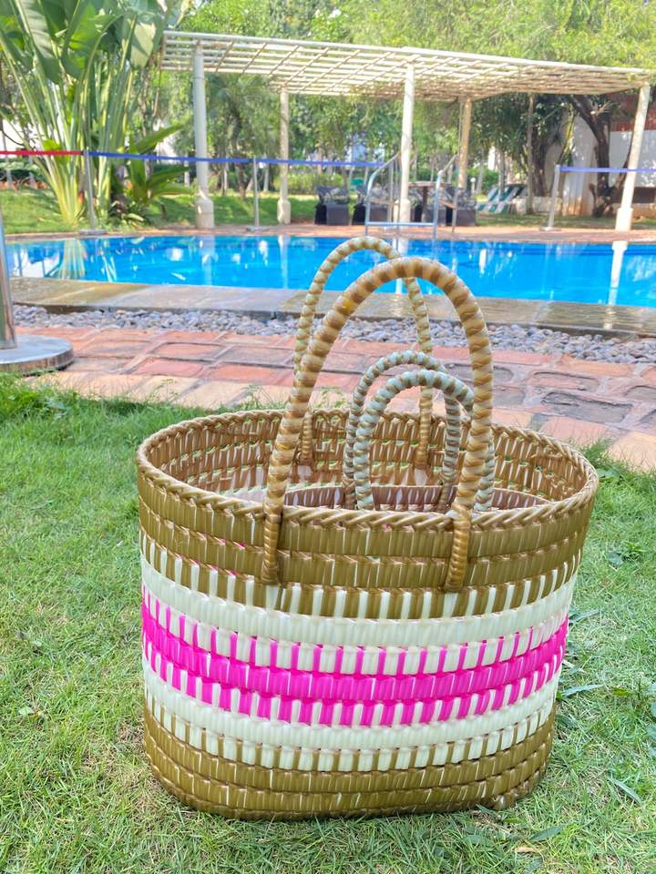 Hand Made Recycled Nylon and PP Woven Striped Plastic Handloom Shopping Bags Made in India Ecofriendly Market Wholesales Bags