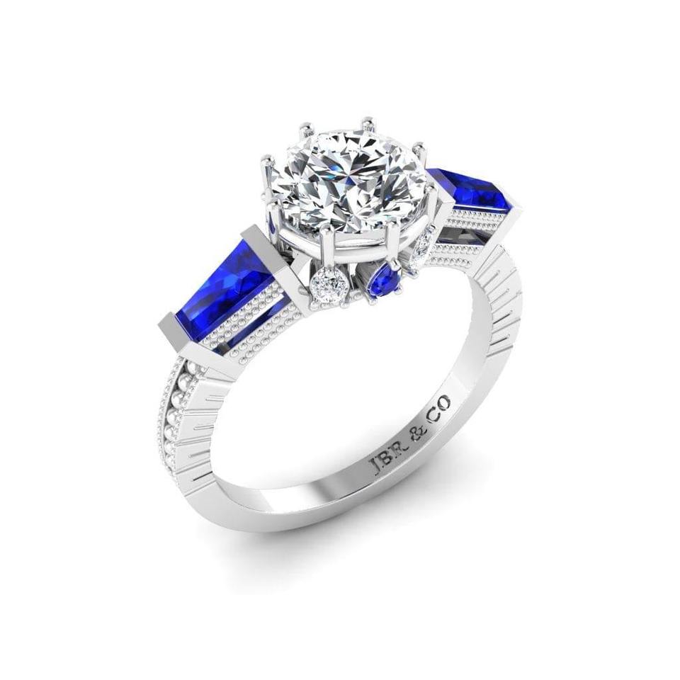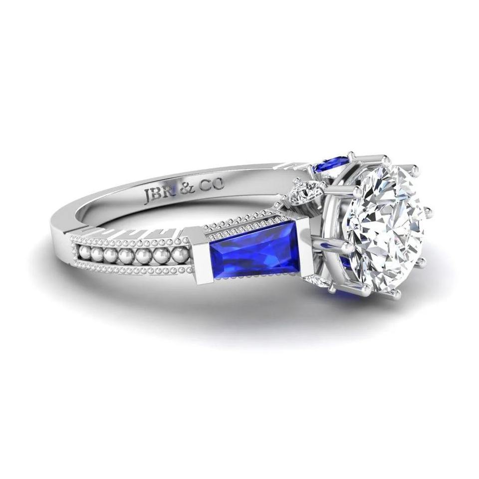 Hand Made Round Diamond Sapphire Gold Plated 925 Silver Three Stone Engagement Ring For Women Fashion At Wholesale Price